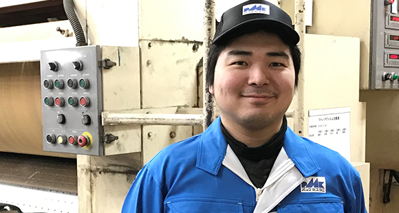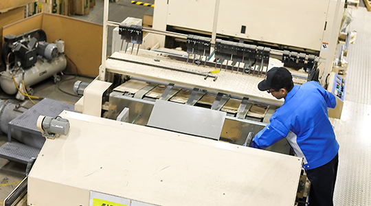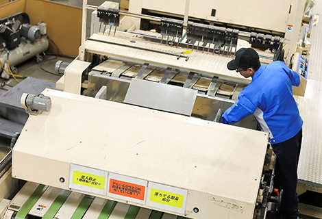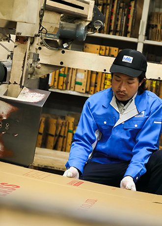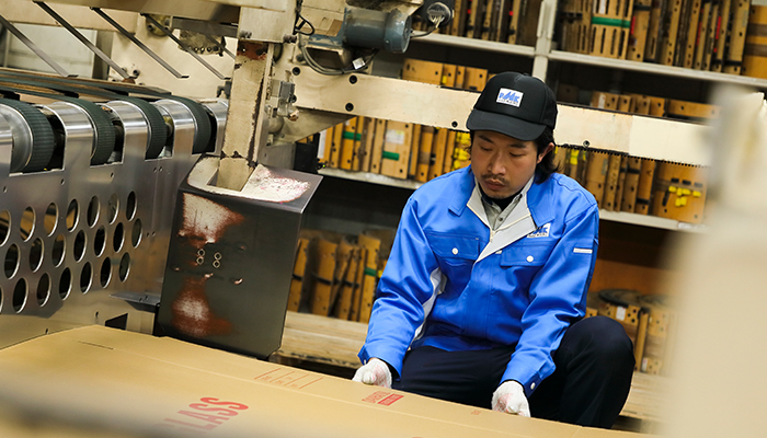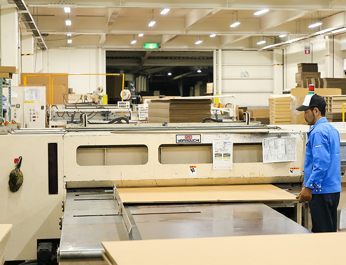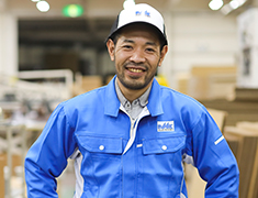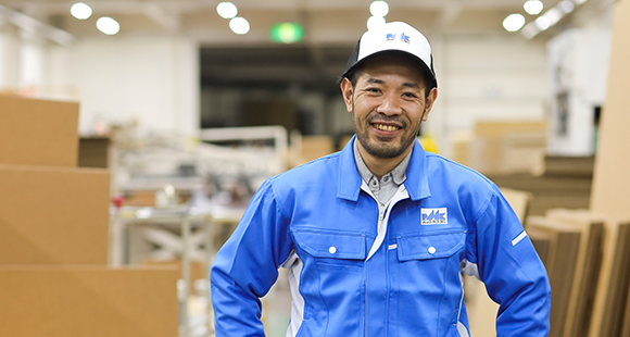 主に、強化ダンボールの製函・加工をする機械で、様々な形式・寸法の段ボールケースの依頼を受け、 長年の経験で得た機械の知識を活かして、お客様から注文頂いた商品を品質・納期に満足して頂けるよう、日々作業しています。