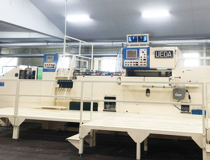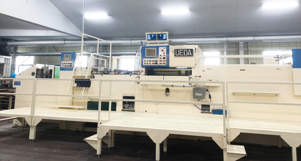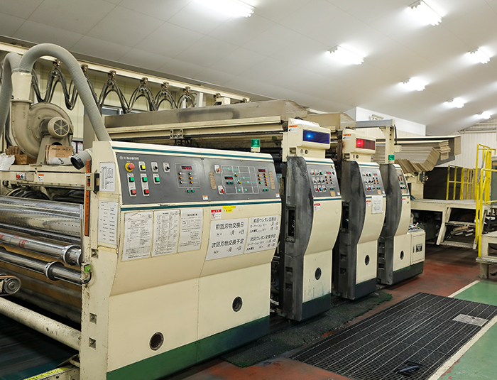 この機械により、重量物用の包装材の抜き・プリントなど各種加工を一度に行えます。