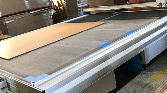 AS3222F平型紙幅2,200×長さ3,200の大型シートを木型なしで設計でき、かつ少ロットであればこの機械で製造出来ます。(大分事業部所有)