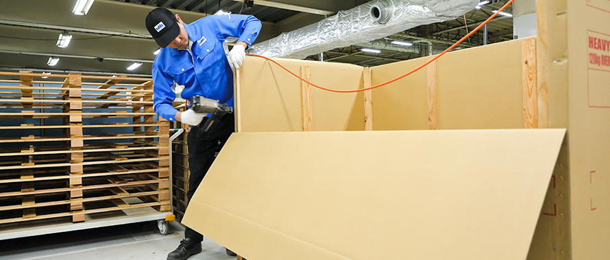 輸送品質を保持する為の緩衝性を考えるのは勿論ですが、梱包箱内の充填率を向上させ、開梱時の作業性負荷の軽減を狙いご提案致します。