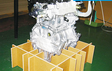 CASE 井桁状の組仕切りで重量のあるエンジンを十分支えることが出来ます。
