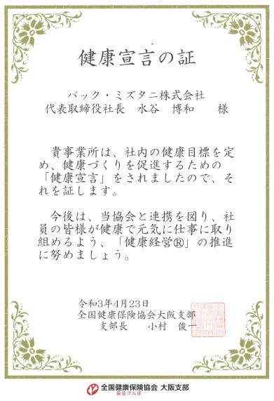 「健康宣言」事業に参加することを宣言いたします。