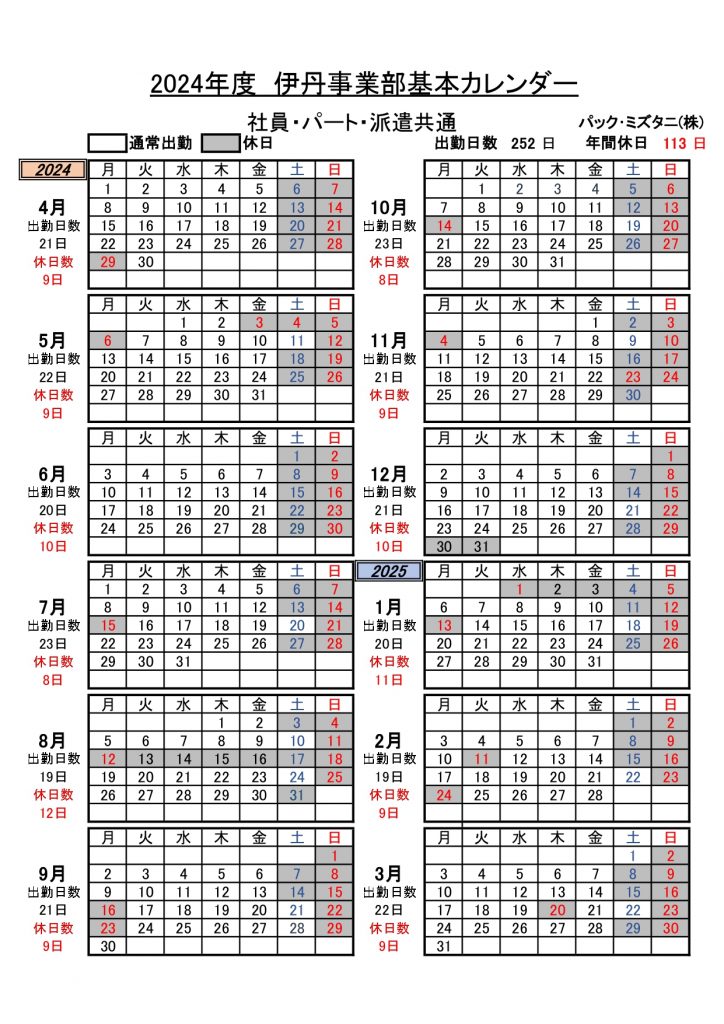 【クリックして表示】2024年度 ダイハツ物流課・物流ソリューション課カレンダー