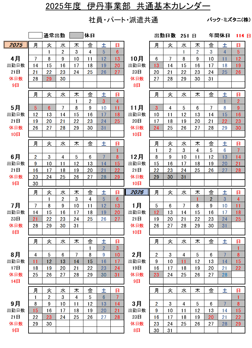 【クリックして表示】2025年度 ダイハツ物流課・物流ソリューション課カレンダー